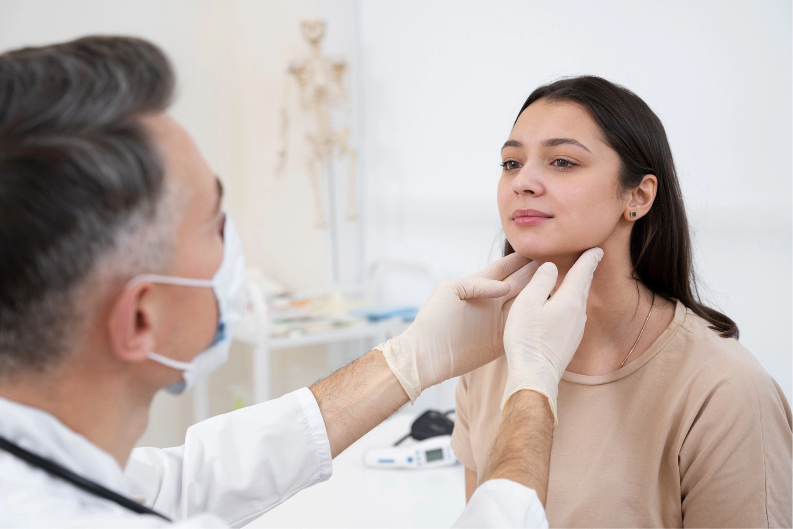 Визуальный осмотр и пальпация. Оценка состояния кожи, волос, измерение роста и веса, осмотр и пальпация щитовидной железы.